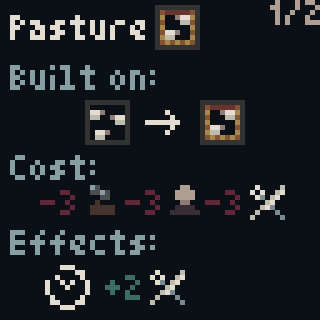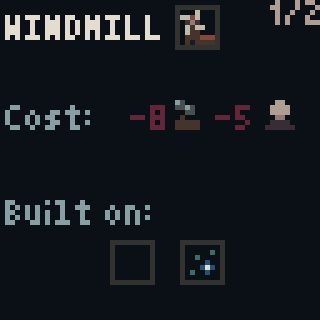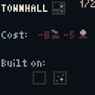 Three days ago I worked on "Grid Game Mechanics" and established a first list of buildings and entities for the game. I decided to dive in the design of these; how they are built, what are their effects and how they interact with each other (using grid mechanics). I got the idea to directly write down those design on 64x64 pixel art documents, "design cards". You can see them in the gallery at the top of the post.